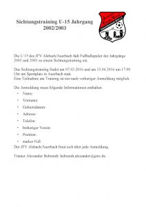 Juniorenförderverein Alsbach/Auerbach sucht Trainer
